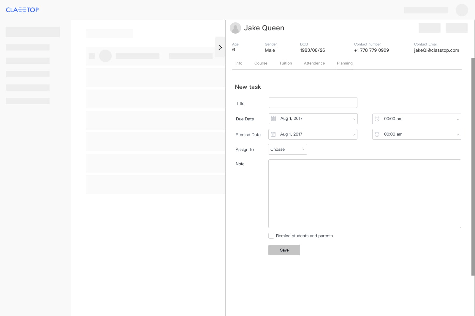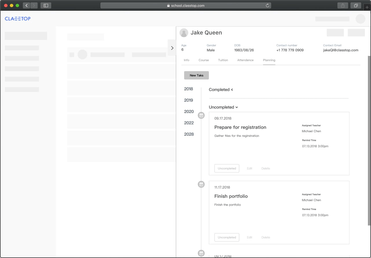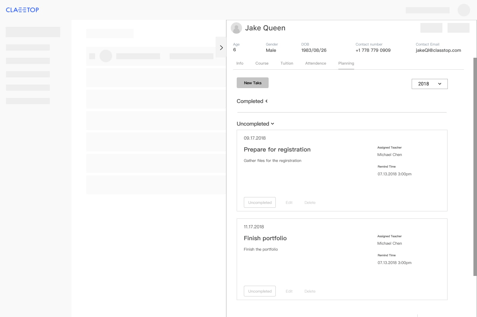 ClassTopBase is a school management software for after-schools. It allows school administrators to manage students, teachers, and classes. I joined the team in 2018 as a solo product designer. I have worked on many aspects of this product, including shaping new features, implementing design system, writing CSS. Here, I will talk about the planning feature I designed for ClassTopBase.
