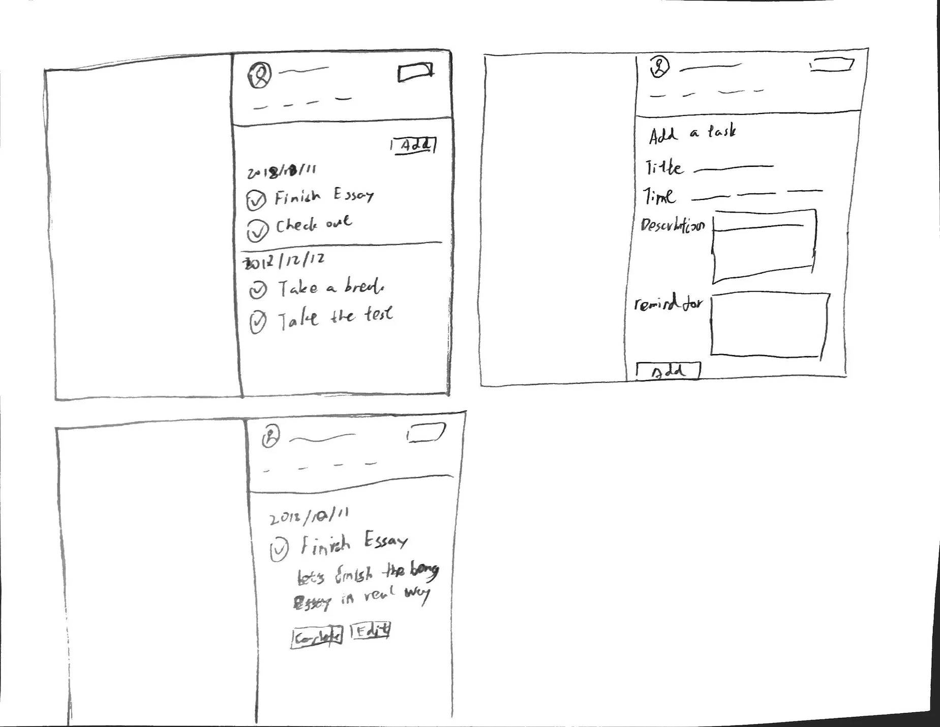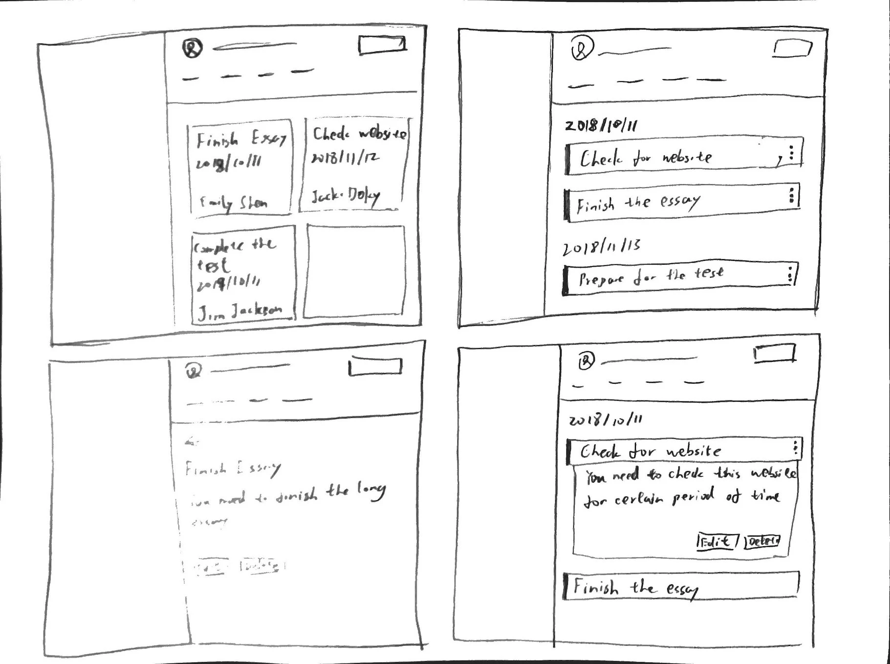 In the wireframe, I put every detail of one task in a bordered box. Based on the feedback I got from team members, the design was visually crowded and took too much vertical space. So after few changes, it only showed the task title in the list view. Once the user clicks on the task, it will expand to show the detail. I also tried to use less border and made use of background colours and white spaces to show the difference.