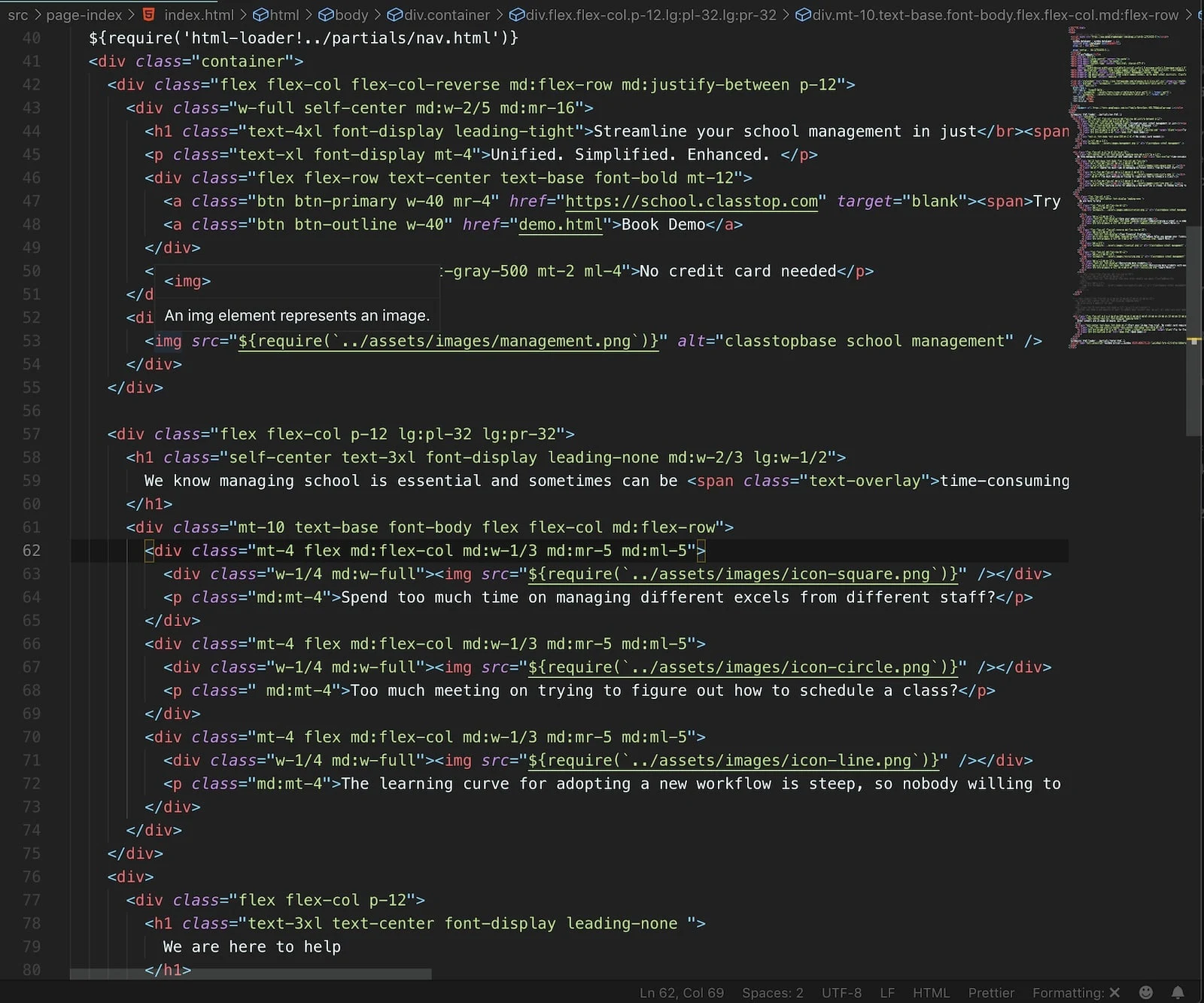 When I designed the home page, I tried two different versions. For the first version, I used a collage of images. I wanted to convey the idea that by using ClassTopBase, you can get organized. The second version showed simple graphics on what each feature is. After asking people who are not tech-savvy for their opinion, the second version was much easier to understand. They felt there was a better connection between the graphics and the copy text. So, I used this version. However, I needed to do more A/B testing to find out which one will convert better.