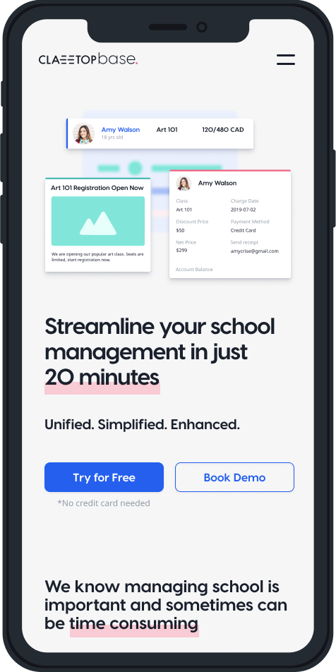 ClassTopBase is a school management software for after-schools. It allows school administrators to manage students, classes, and teachers. I joined the team in 2018 as a solo product designer. After working on the product for a year, we shipped many new features and updated our brand. The old website needed a refresh.